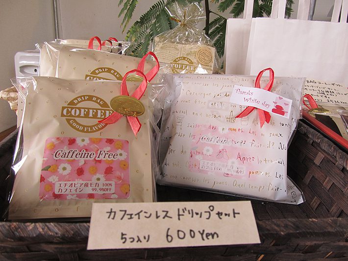 ホワイトデー、やっぱり甘い物にはかないません 2017-03-14 投稿者: Forest coffee shop 今日はホワイトデーです。 フォレストでもホワイトデー用にカフェインレス・コーヒーのプチギフトを作ったのですが、残念ながらいまひとつの売れ行きでした。 数年前は、義理チョコ返しで作っても作っても足りなかったのですが・・・やっぱり義理チョコは廃れてしまったようですね。 本チョコのお返しは、苦いコーヒーよりも甘いお菓子ですよね。 前の記事噴煙のような雲が流れる富士山次の記事 単品焙煎するブレンドコーヒーの意味