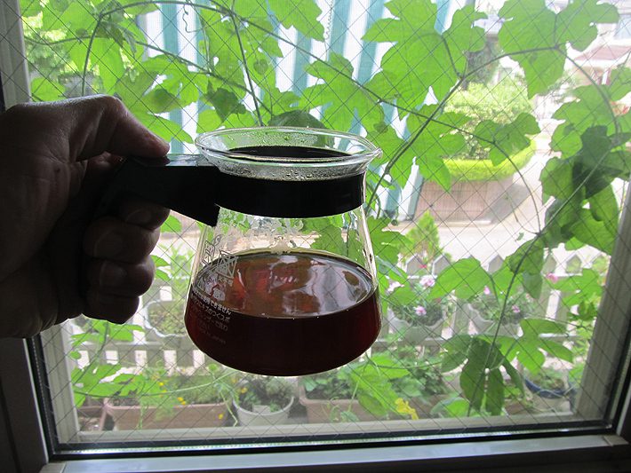 身体に優しい真夏の湯冷ましコーヒー 2017-07-25 投稿者: Forest coffee shop 今日も暑いです。 暑い日は冷たいアイスコーヒーも美味しいですが、やっぱりホットコーヒーは「ほっ」とします。 焙煎後のテイスティングで淹れたエチオピアン・モカをエアコンの効いた店内でそのまま放置。 程よく室温で冷えた湯冷ましコーヒーは身体に優しく感じます。 網戸に這うゴーヤをバックに撮ってみました。 前の記事お中元も消える?次の記事 エアコンが故障してしまいました