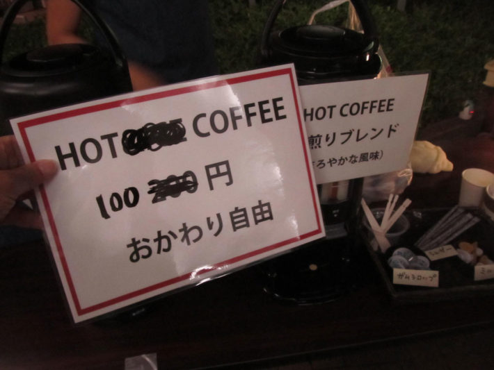 おかわりのコーヒーも少なくなったころ、100円に値下げで最後の一滴まで販売させていただきました。