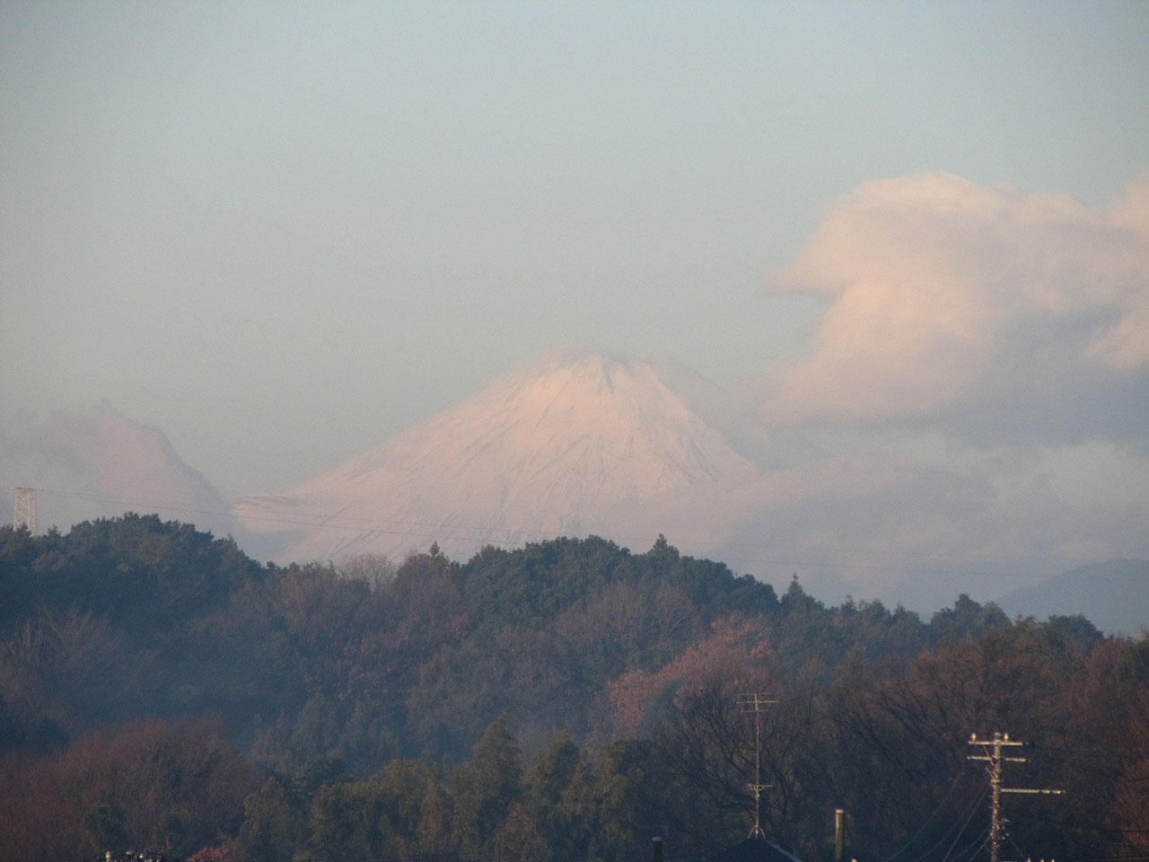 今朝は粋に斜めに雲を被った富士山が見えました。 南側の斜面に雲が張り付いているので、北風が強いのでしょうか? 見るからに寒そうに見えます。 大晦日は雨の予想となりました。 元旦、晴れれば真っ白な富士山が見られそうです。