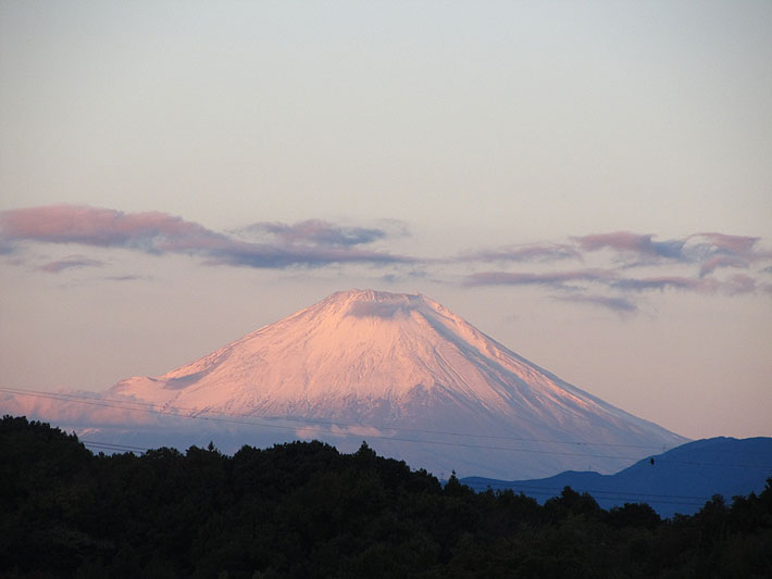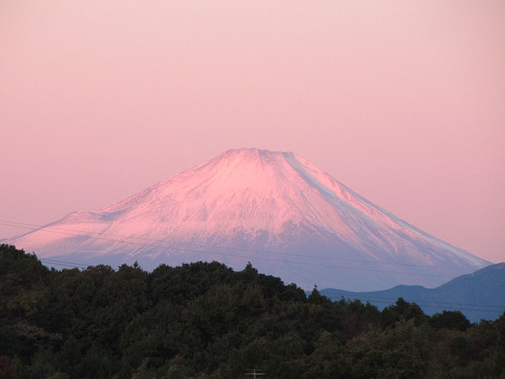 今朝も妻に富士山を撮ってもらいました。 日が昇るのがだんだん遅くなり、いつもの時間なのに日の出直後の富士山画像が見られます。 ピンク色に染まった富士山は本当に幻想的です。 早く肉眼で見たいものです。