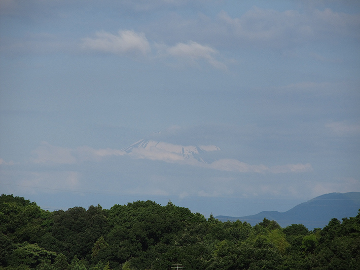 昨日から梅雨明けしてしまったようなお天気が続いています。 今日は空気も乾燥して、富士山が良く見えています。 山体部分が空の色に同化して、冠雪部分だけが空に浮かんでいるように見えます。 夕方、綺麗なシルエットが見れそうです…