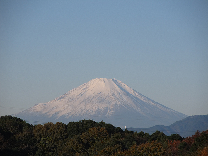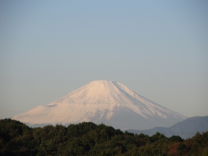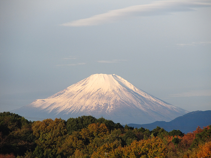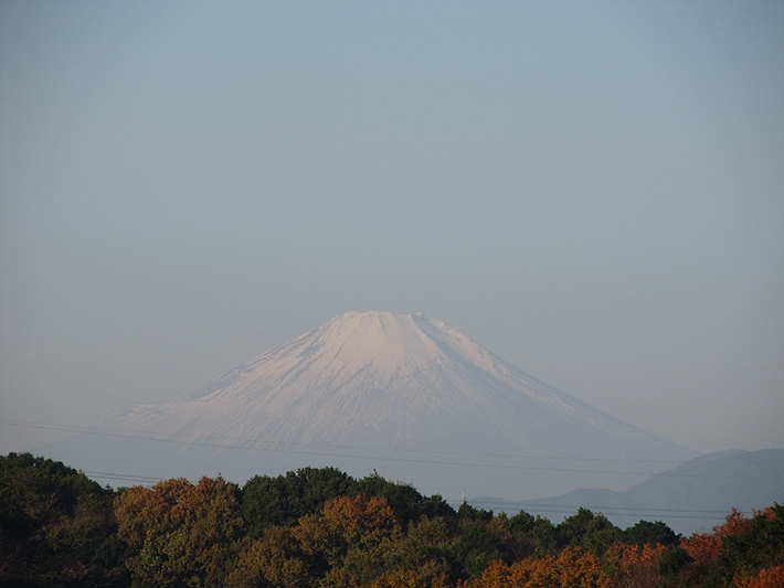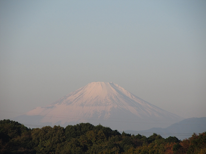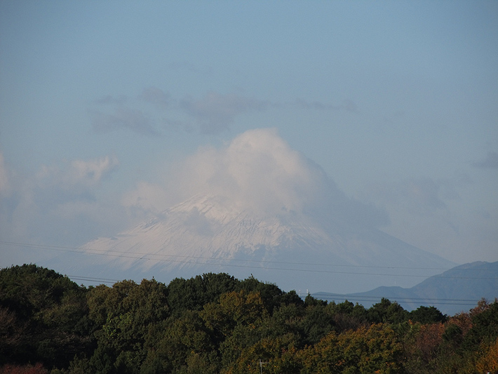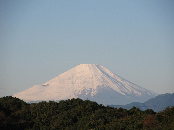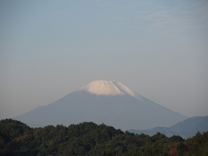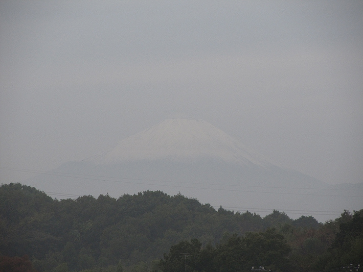 雨上がりの今朝はワンチャンスで富士山が見えていました。 (この数十分後は見えなくなってしまいました) 良く見ると一気に雪の量が増えたみたいです。 本格的な冬富士の始まりですね。