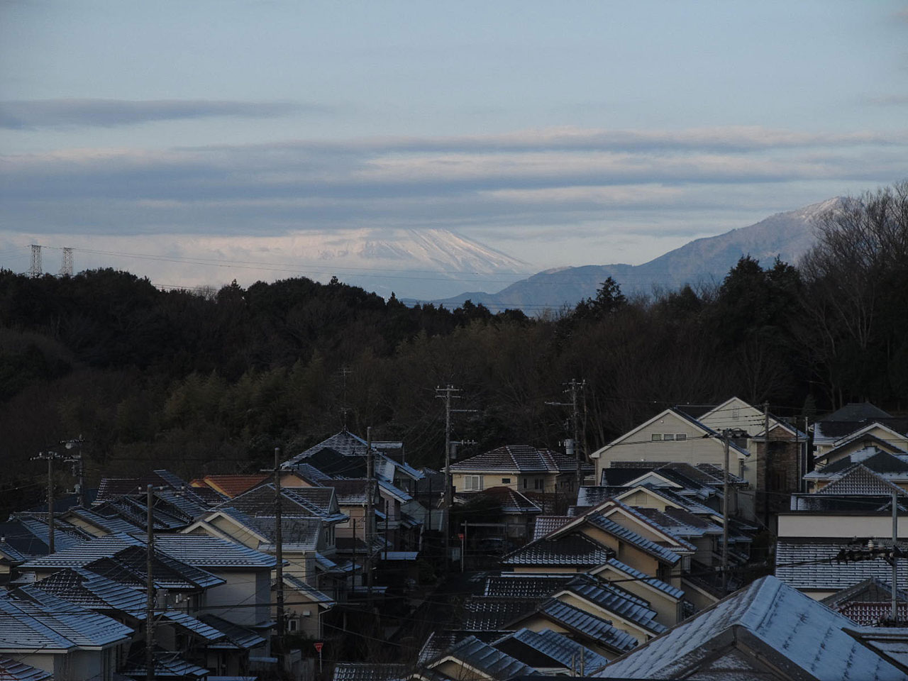 心配していた雪ですが、屋根にうっすらと積もる程度で済みました。 融雪剤とスコップを用意していたのですが・・・ 雪が降った翌日は富士山が綺麗に見える事が多いのですが、今日は終日雲に隠れていました。 お隣、丹沢の大山も真っ白…