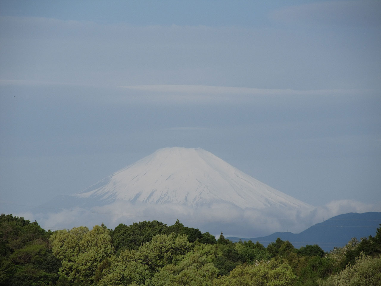 嵐の翌朝の新緑と富士山 2018-04-07 投稿者: Forest coffee shop 昨夜は強い風と雨で怖いくらいでした。 嵐が過ぎた今朝は富士山が綺麗に見えていました。 この時期、新緑が初々しく、白い富士山を引き立ててくれます。 よく見ると富士山の上空には傘雲らしき形をした雲が幾つか見えます。 お天気下り坂のサインなのか、この数時間後富士山はまた雲の中に消えてしまいました。 前の記事桜色した富士山次の記事 春の嵐の前の富士山