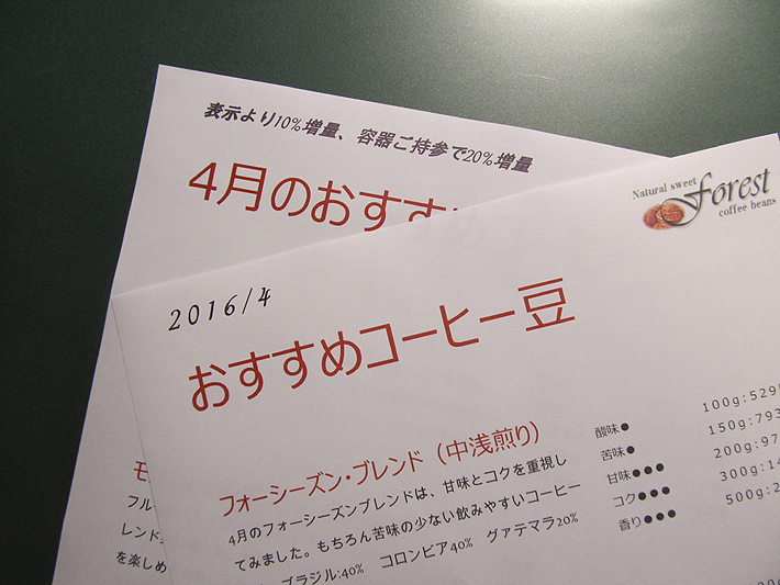4月から変えたおすすめ品のポスターですが、やっぱり肝心な部分が抜けていました。 おすすめ品は10%増量(容器ご持参で20%)なのに、そのコメントを忘れていました。 今日、遠慮がちにお客様のご指摘で発覚しました。 お客様っ…