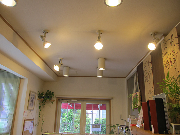 店舗内のスポットライトを交換してみました。 消費電力は同じなのに、照明器具の形状でまったく明るさが違うのには驚きです。 以前はセード(反射板)付きのスポットライトで、電球型蛍光灯が光源でした。 3灯あるうちの1灯が切れて…